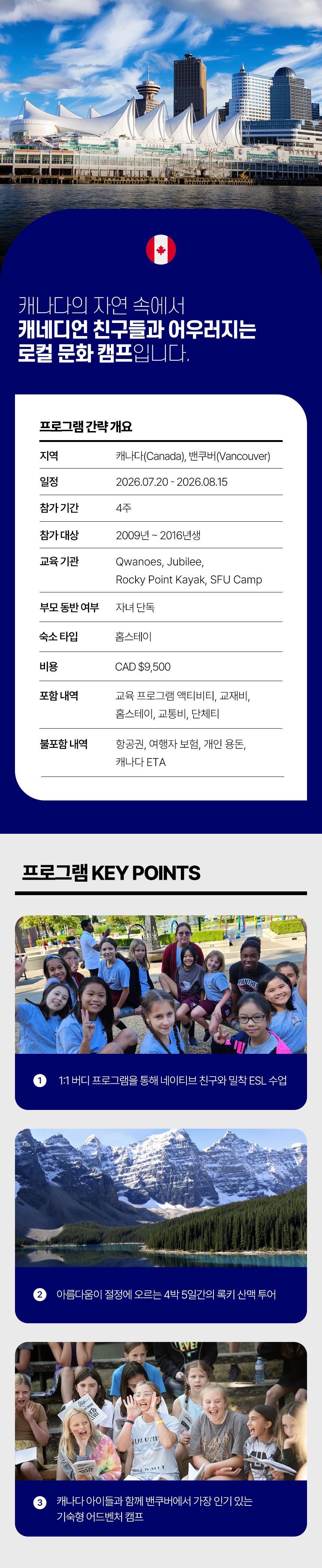 캐나다 밴쿠버(코퀴틀럼) 어드벤처 영어캠프