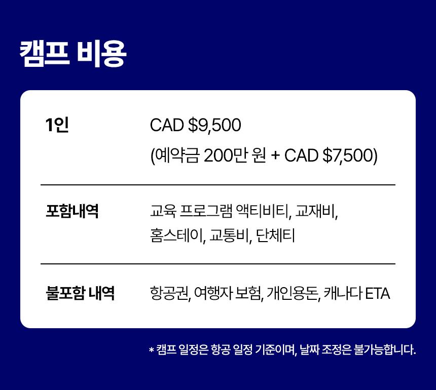 CAD $9500(예약금 200만원+ CAD $7500)