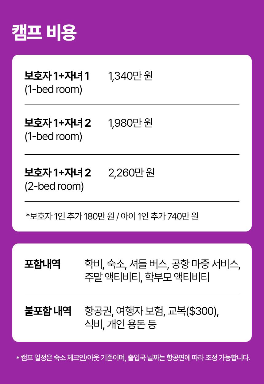 - 보호자 1+ 아이 1 (1bed room) 1340만원